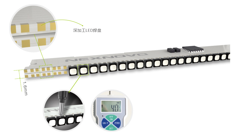 晶泓科技经多年时间开创性研发3D贴片技术,PCB板上的每一个焊盘均经过8次精湛工艺处理,以确保PCB与LED灯牢固焊接。