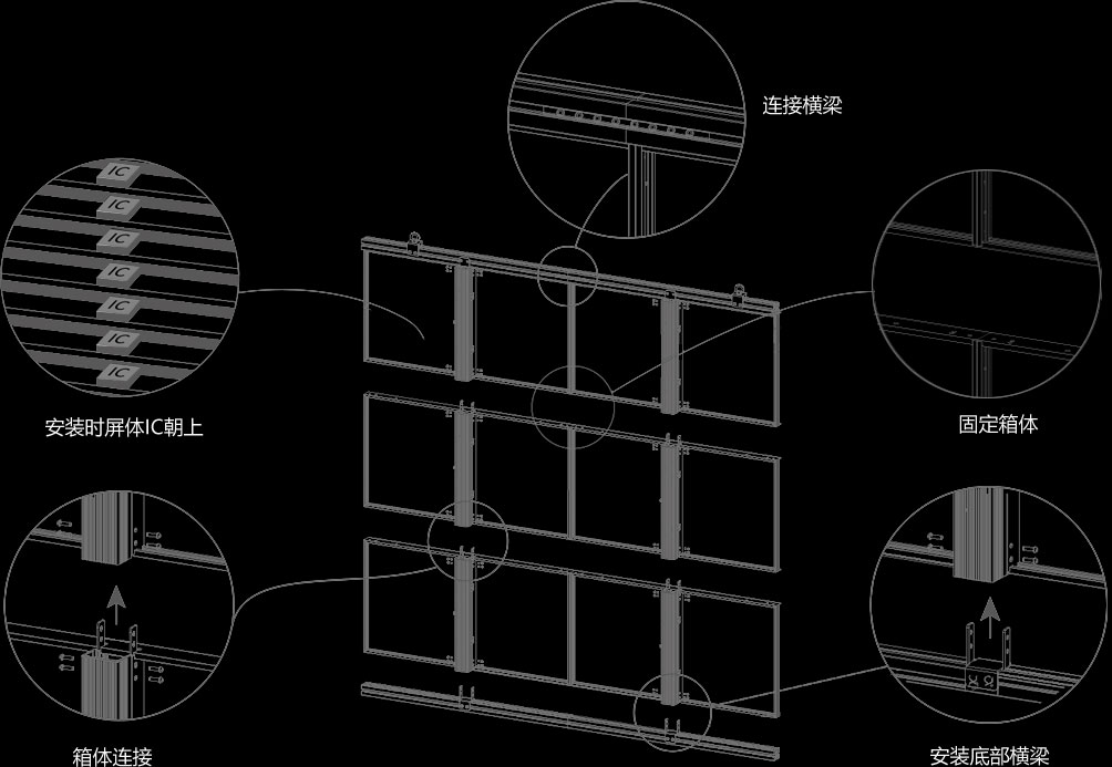 晶泓LED透明屏(XF系列)使用表贴技术,采用亮度、 色彩高度一致性的国星品牌灯珠,标准箱体亦支持定 制,模块设计、安装便捷。适用于室内固定安装,广 泛应用于玻璃橱窗、中庭、观光电梯等场合。